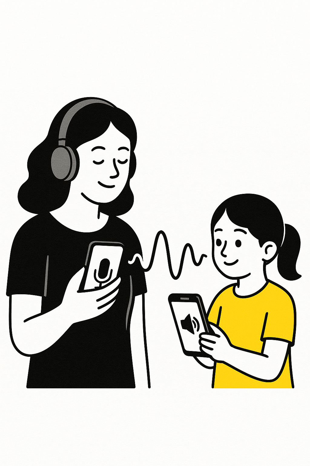 Parents can listen instantly — बच्चा जैसे बोलता है वैसी आवाज़ तुरंत सुनाई देती है।